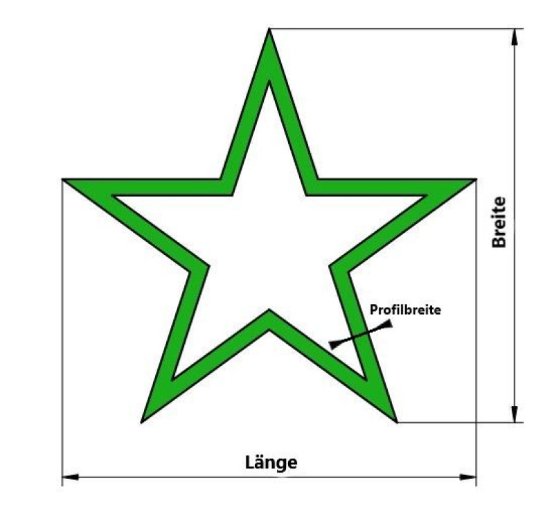 Sie benötigen einen Stern Rahmen nach Maß, kein Problem. Geben Sie einfach an welches Material Sie möchten, wir bieten diese in Edelstahl und Stahl an. Danach können Sie Ihr gewünschtes Profil auswählen. Es gibt Rundstab, Flachstab, Rechteckrohr, Quadratrohr, Rundrohr und Winkel. Anschließend müssen Sie die Profilbreite der Draufsicht auswählen, diese ist jedoch nur bei Profilen mit ungleichen Seitenlängen von Nöten, damit der Stern Rahmen auch so zusammen geschweißt wird wie Sie es wollten, sind natürlich noch einige weitere Maßangaben nötig. Am Ende können Sie noch auswählen ob die Schweißnähte verschliffen werden müssen oder nicht, ebenfalls können Sie aussuchen ob der Rahmen Feuerverzinkt und Pulverbeschichtet werden soll. Vor dem beschichten müssten jedoch diagonal zueinander, Löcher mittig im Profil, jeweils an den Ecke der Stirnseite in den Rahmen gebohrt werden.